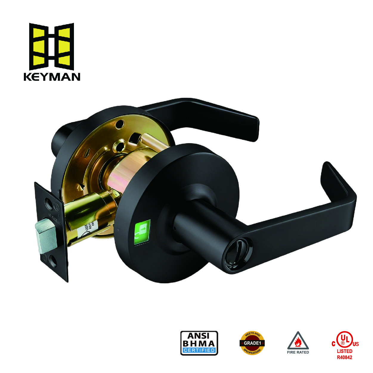 KEYMAN 商业门锁专为满足高人流量商业环境的苛刻要求而设计。它经过了最高行业标准(包括 ANSI/BHMA 2 级)认证,具有卓越的耐用性和长期可靠性。
