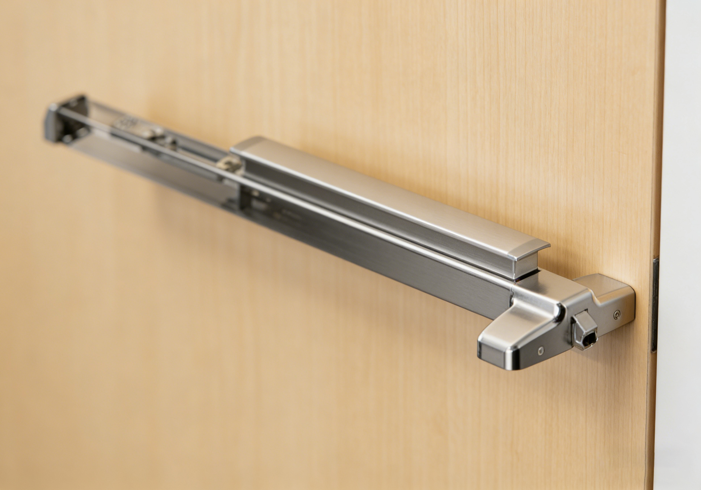 防火出口杆 是 防火门上使用的一种特殊类型的装置。虽然标准应急杆通常具有“追踪”功能(允许锁闩在白天保持缩回状态以进行推拉操作),但防火设备 不能 具有机械追踪功能。每次关闭门时都必须锁好,以防止火灾和烟雾蔓延。