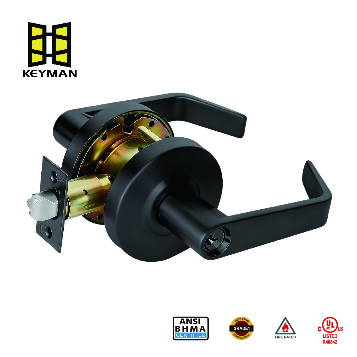 一个关键特性是其 UL 3 小时防火等级,它证明锁组件可以保持其完整性,并在安装在防火门上时帮助控制火灾和烟雾长达三个小时,支持符合建筑安全规范。光滑的 黑色表面 不仅美观,而且还具有增强的耐磨性、耐腐蚀性和耐指纹性。