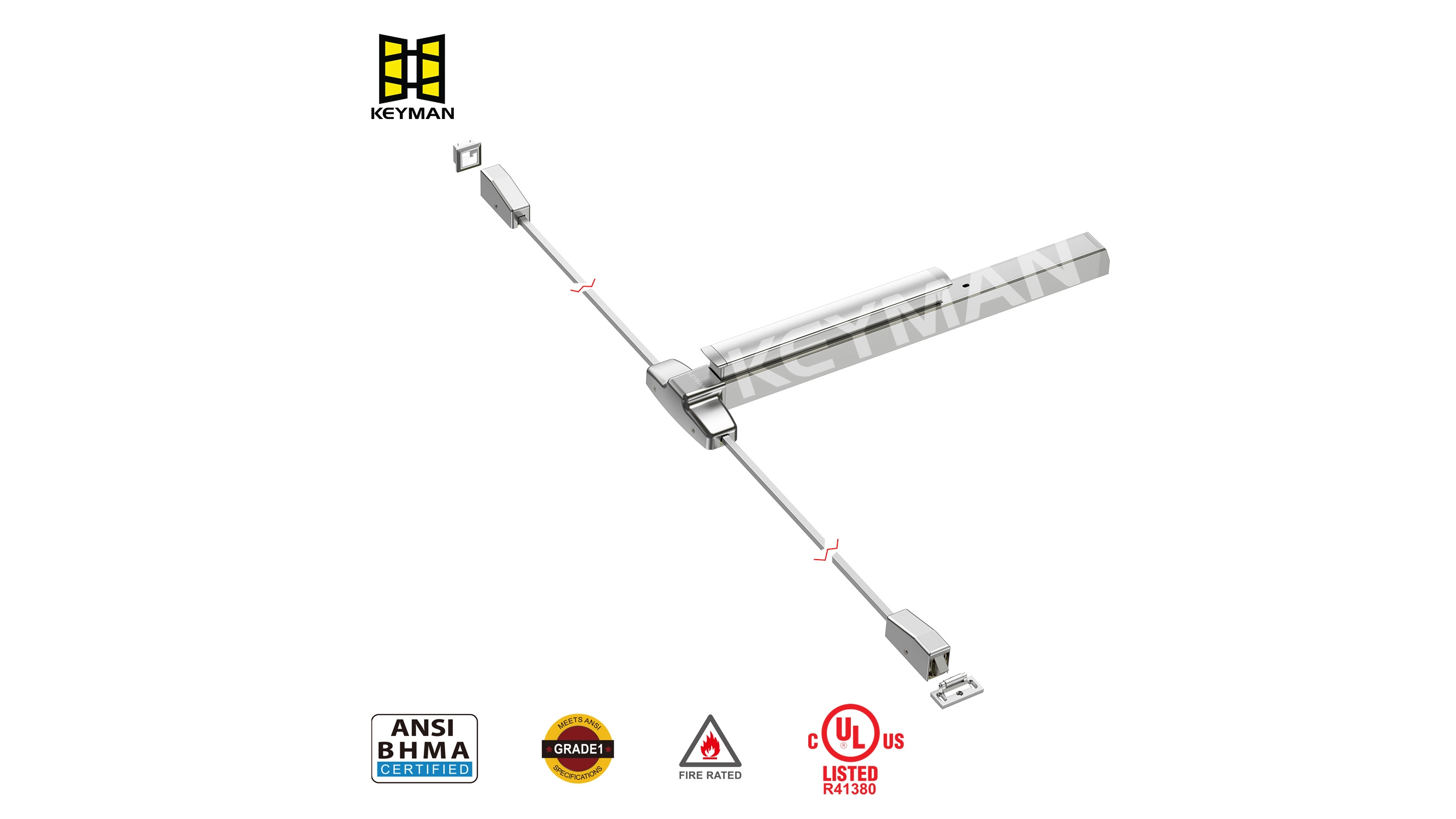 · 闩锁机构: 该杆连接到闩锁机构,该机构可以根据设备的类型而变化。常见类型包括垂直杆系统(门的顶部和底部有闩锁)或插芯锁系统(闩锁安装在门本身内)。