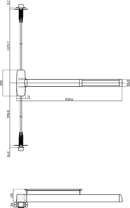 | Concealed Mounting Vertical Rods | ● 1/2" Cylindrical tube, Standard rods accommodate 7Ft (2134mm) door. ● Top rod length is 37-1/4" (946mm), Bottom rod length is 31-4/5" (807mm) standard. |