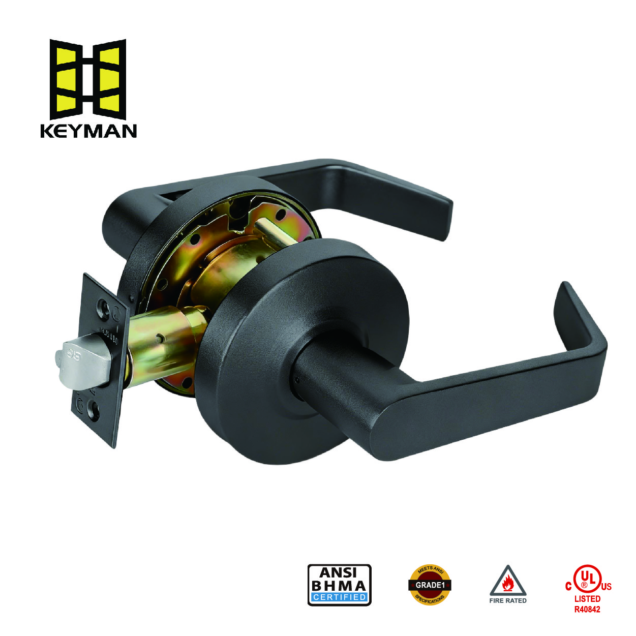 KEYMAN Commercial Door Locks Heavy Duty Grade 2 Lever, Non-Handed, UL 3 Hour Fire Rated,Back Finish , 2-3/4''Backset,Passage Lock
