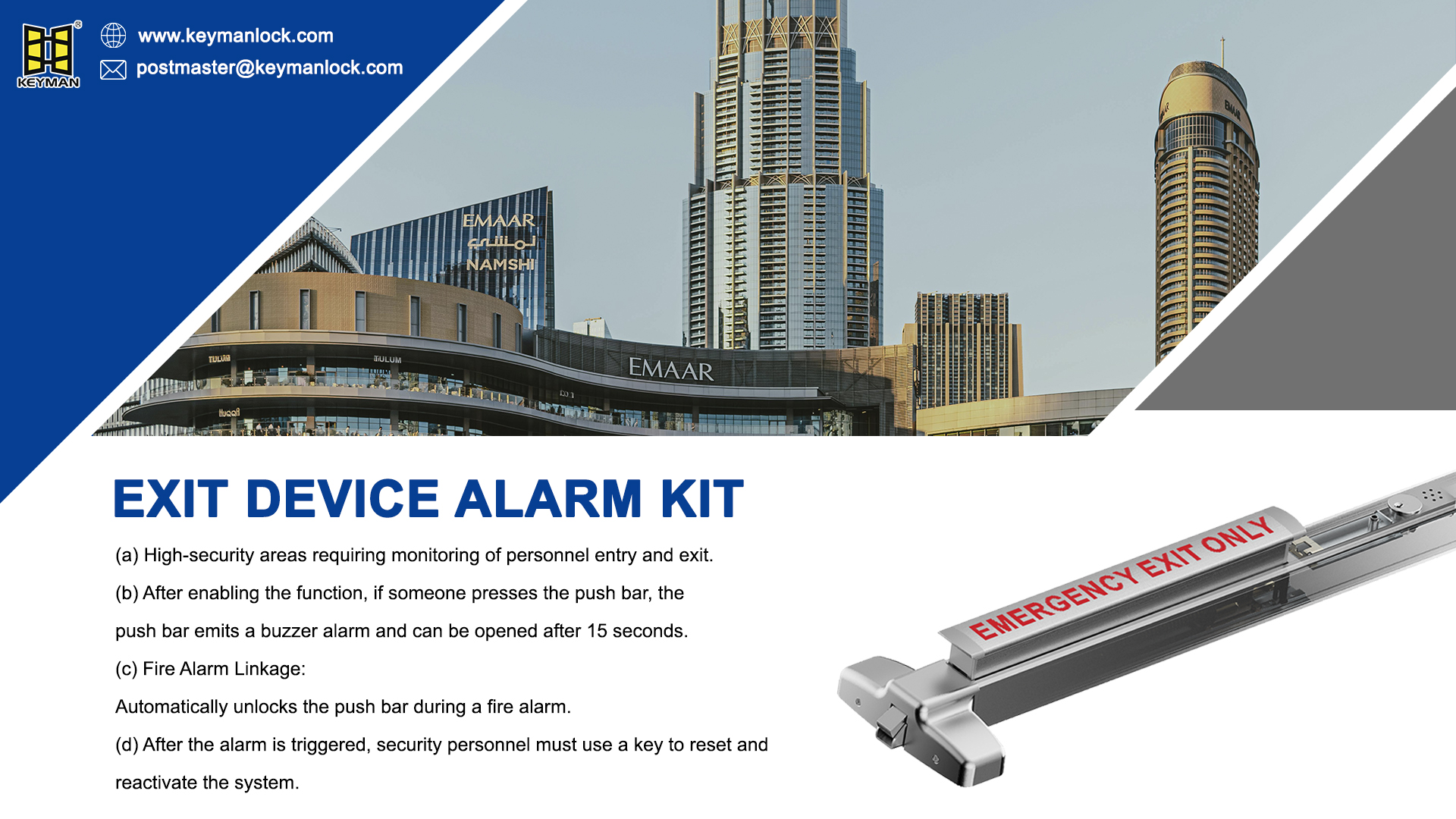 Securing your facility requires the right combination of safety and surveillance. Upgrading your panic exit devices with an EXIT DEVICE ALARM KIT offers peace of mind. You maintain full compliance with emergency building codes while keeping a tight grip on who leaves your building and when.